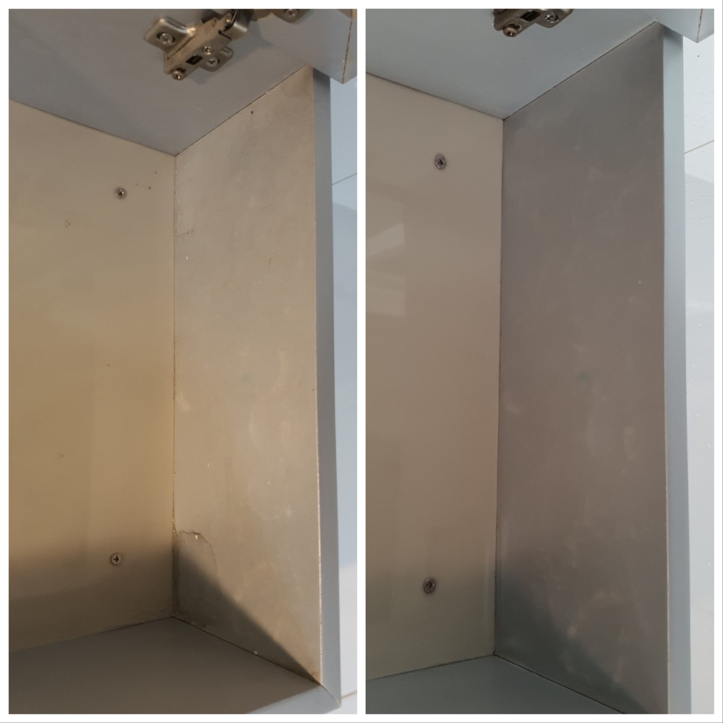 수납장 안쪽 오염된 부분이 잘 보이도록 가까이서 촬영